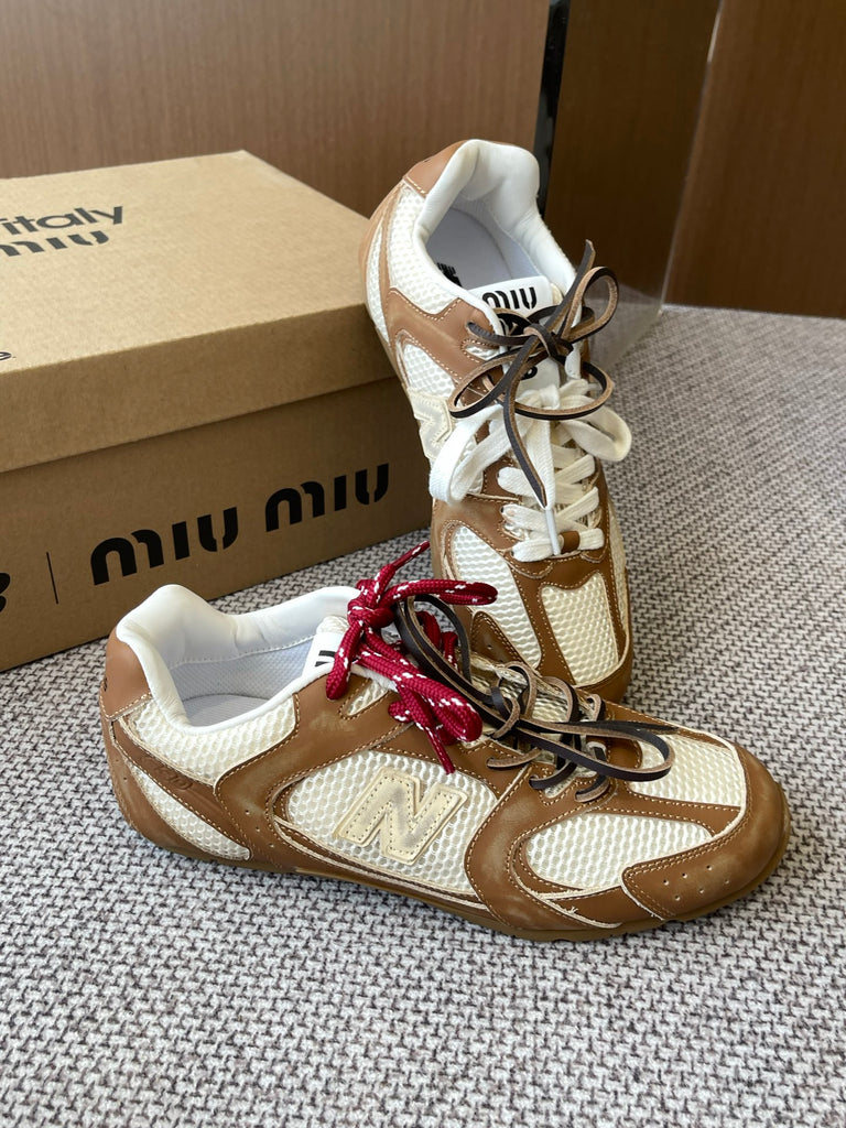 Pre-Order | Retro Panel Lace-Up Trainers – Camel & Cream