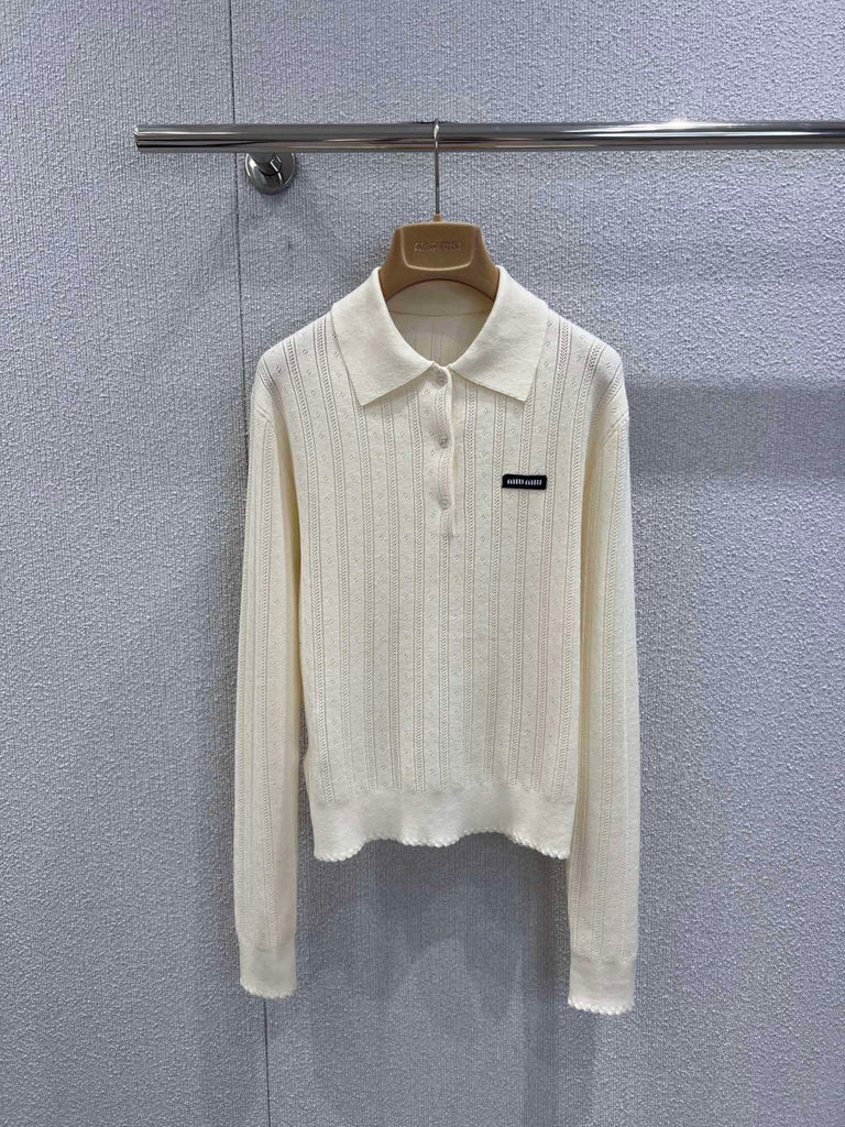 Pre-Order | Ribbed Logo Knit Top – Cream